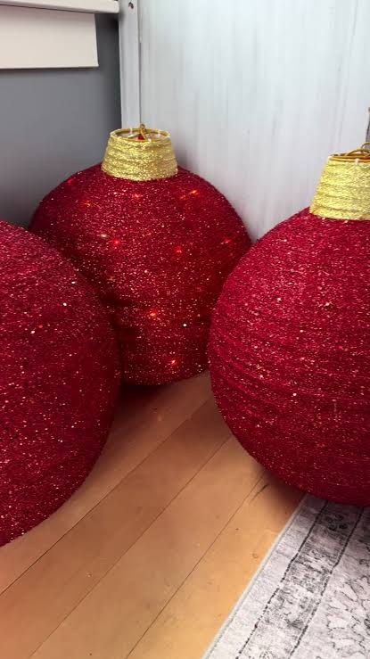 Our jumbo Christmas ornaments are the ultimate way to add magic and excitement to any space! Designed to hang anywhere, from your grand tree to doorways, mantels, or even outdoors, these oversized beauties make a bold statement and bring the festive spirit to life. Whether you're decorating a cozy living room or hosting a holiday party, their eye-catching size and sparkling details instantly transform any space into a winter wonderland. Perfect for families looking to make lasting memories or anyone wanting to take their holiday decor to the next level—these ornaments are more than just decorations, they're a holiday experience. Don’t miss out on this must-have decor—grab yours and create a festive scene that will be remembered for years!